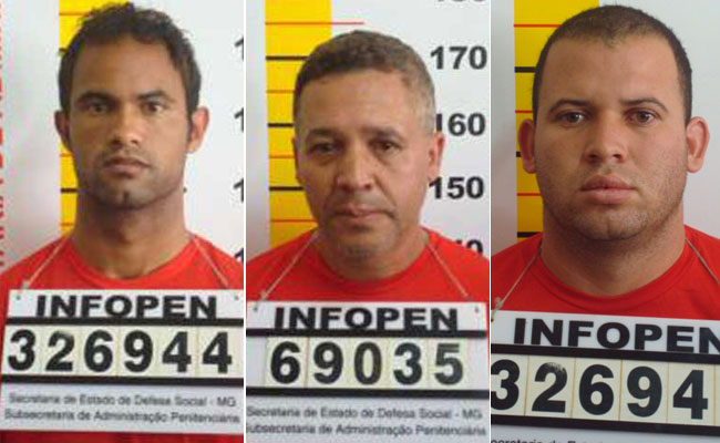 A Polícia de Minas Gerais divulgou na tarde desta sexta-feira fotos de Bruno, Bola e Macarrão com o número do registro de prisão