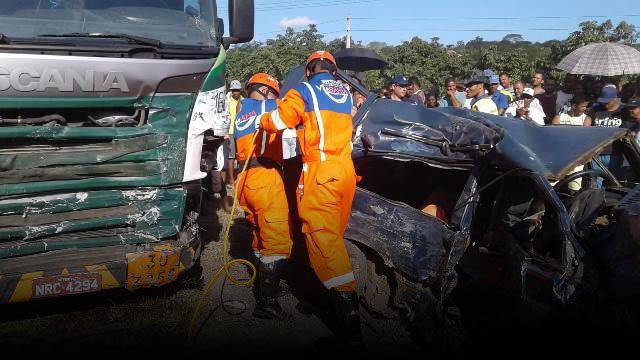 Quatro corpos ficaram presos às ferragens e equipes de resgate da ViaBahia foram acionadas para fazer a remoção. Um policial rodoviário federal disse ao Acorda Cidade que, de acordo com relatos de testemunhas, um caminhão tentou fazer uma ultrapassagem, mas não conseguiu completar e ao retornar para a pista bateu na Paraty, que foi lançada em direção ao bitrem no sentido oposto. O caminhão está apreendido no posto da PRF. “Segundo relatos das testemunhas, uma vez que não temos o parecer preciso, um caminhoneiro, que também seguia sentido Feira de Santana, foi fazer uma ultrapassagem. Quando ele percebeu que não daria para concluir essa ultrapassagem, ele tentou retornar para sua pista pegando a Parati lateralmente, que perdeu o controle e foi para a pista contrária, sentido Santo Estevão, e a carreta acabou por colidir de frente vitimando essas pessoas”, disse.
