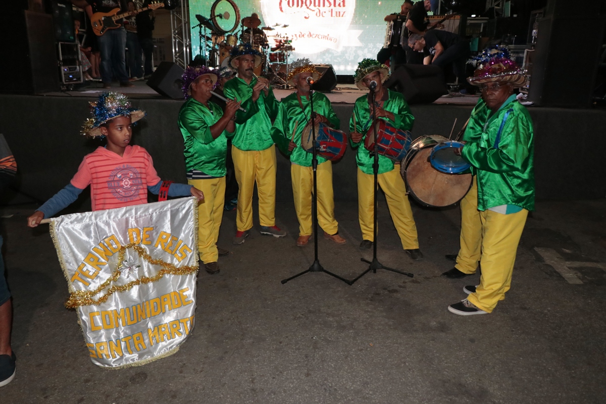Domingo, 23 de dezembro, contagem regressiva para a celebração de uma das principais festas do cristianismo. Quando terminou a missa da Catedral, os músicos da Roama já se ajeitavam no palco para abrir a última noite das apresentações musicais do Natal Conquista de Luz, na praça Tancredo Neves. O cenário, digno de cartão postal, ficou ainda mais inspirador quando a pequena orquestra executou as primeiras notas. O repertório passeou pela música nacional e internacional, saindo de “Impossible” e “If ain’t got you” e chegando a “Olha” e “Como nossos pais”.