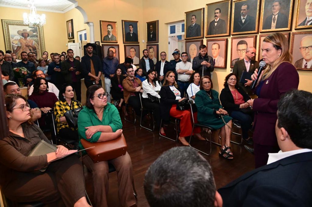 No final da tarde desta segunda-feira (30), a Casa Memorial Régis Pacheco recebeu a cerimônia de entronização do quadro da prefeita Sheila Lemos, referente ao mandato ocorrido entre 2021 e 2024, que passa a integrar a galeria de ex-gestores do município.
