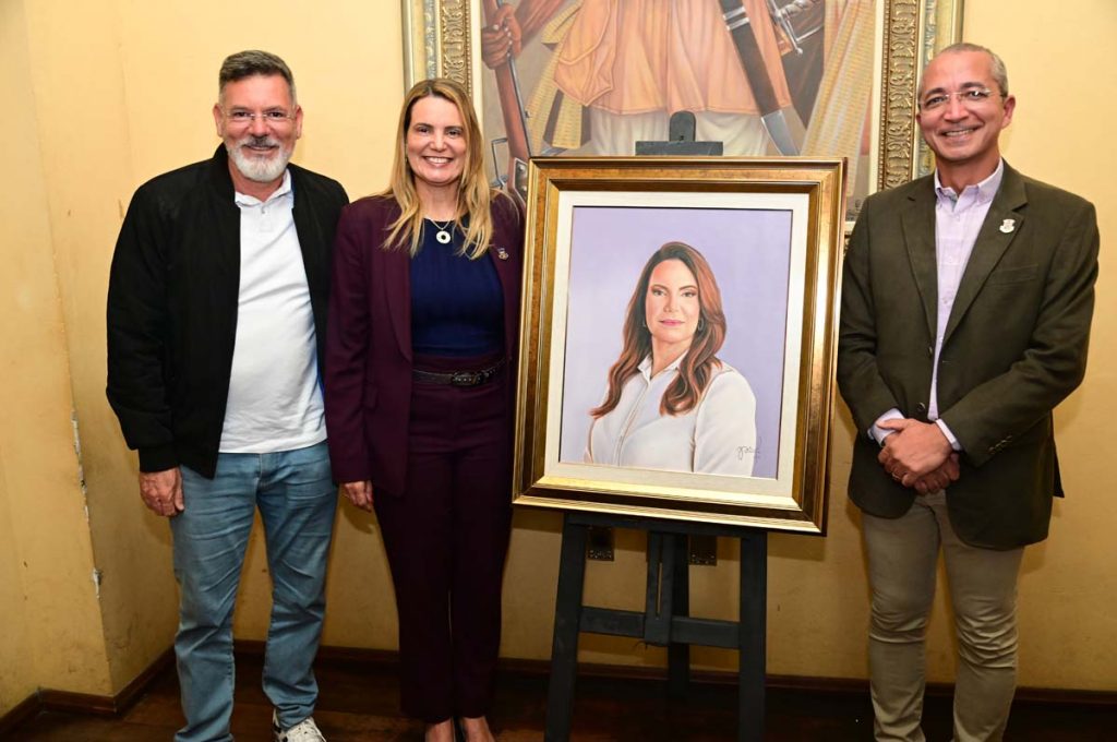 “Pra mim é uma honra e uma alegria ter uma obra na Casa Régis Pacheco. É um espaço que eu tenho muito carinho, já fiz alguns trabalhos aqui como curadoria, montagem de exposições, já trouxe trabalho de outros artistas pra cá, e não imaginava que um dia teria uma obra minha na galeria dos gestores. É muito simbólico o fato de ser uma mulher pintando a primeira gestora do município”.