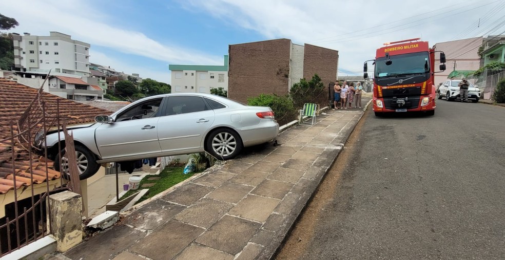 Uma cena inusitada e assustadora marcou a manhã deste sábado (15) em Erechim, na Região Norte do Rio Grande do Sul. Um carro desgovernado colidiu contra uma residência e ficou suspenso entre a calçada e o telhado da casa. O acidente chamou a atenção dos moradores, pois o imóvel está localizado em um terreno íngreme, abaixo do nível da rua.